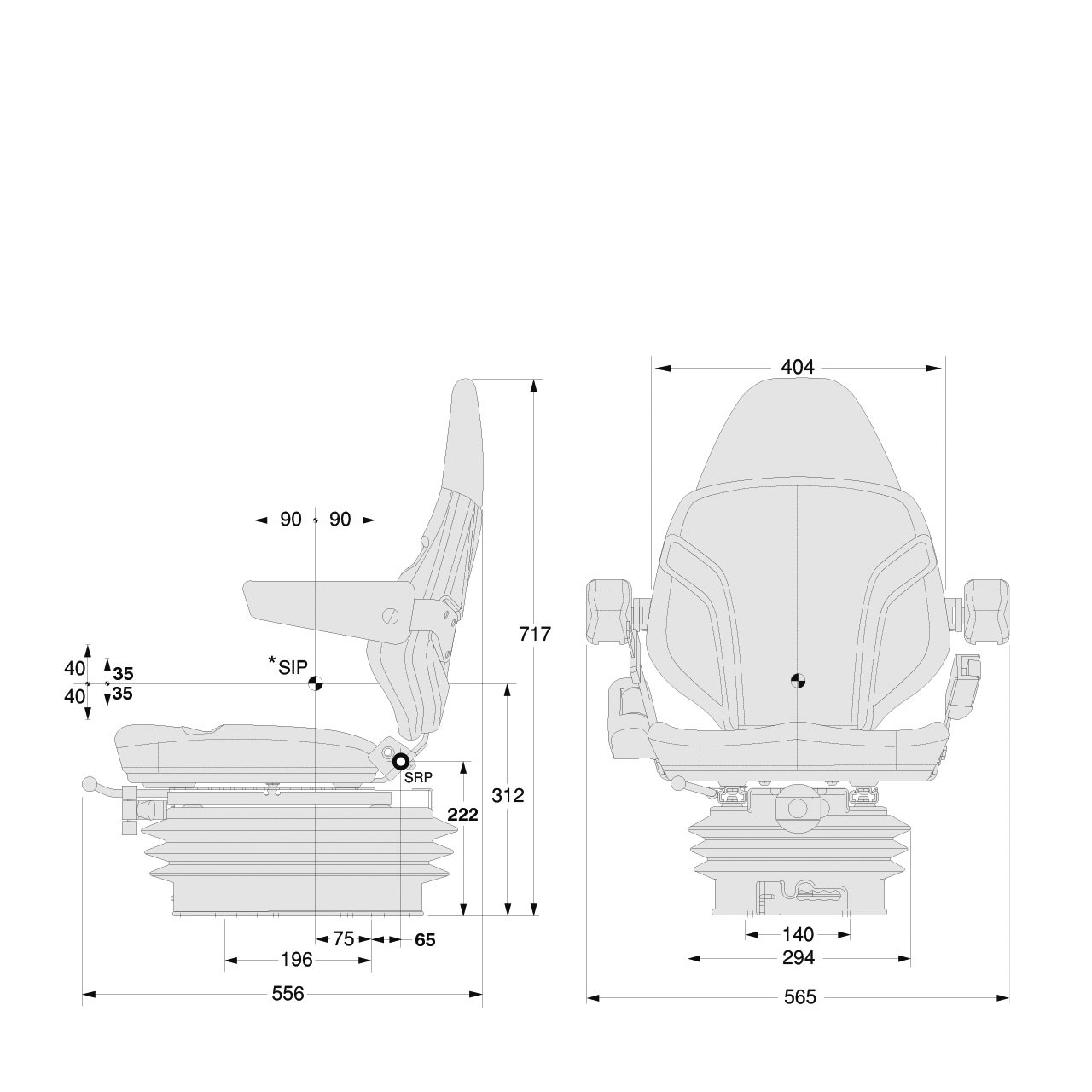 Le siège agricole KAB SEATING peut être équipé d'accoudoirs, d'une ceinture ventrale 2 points.
