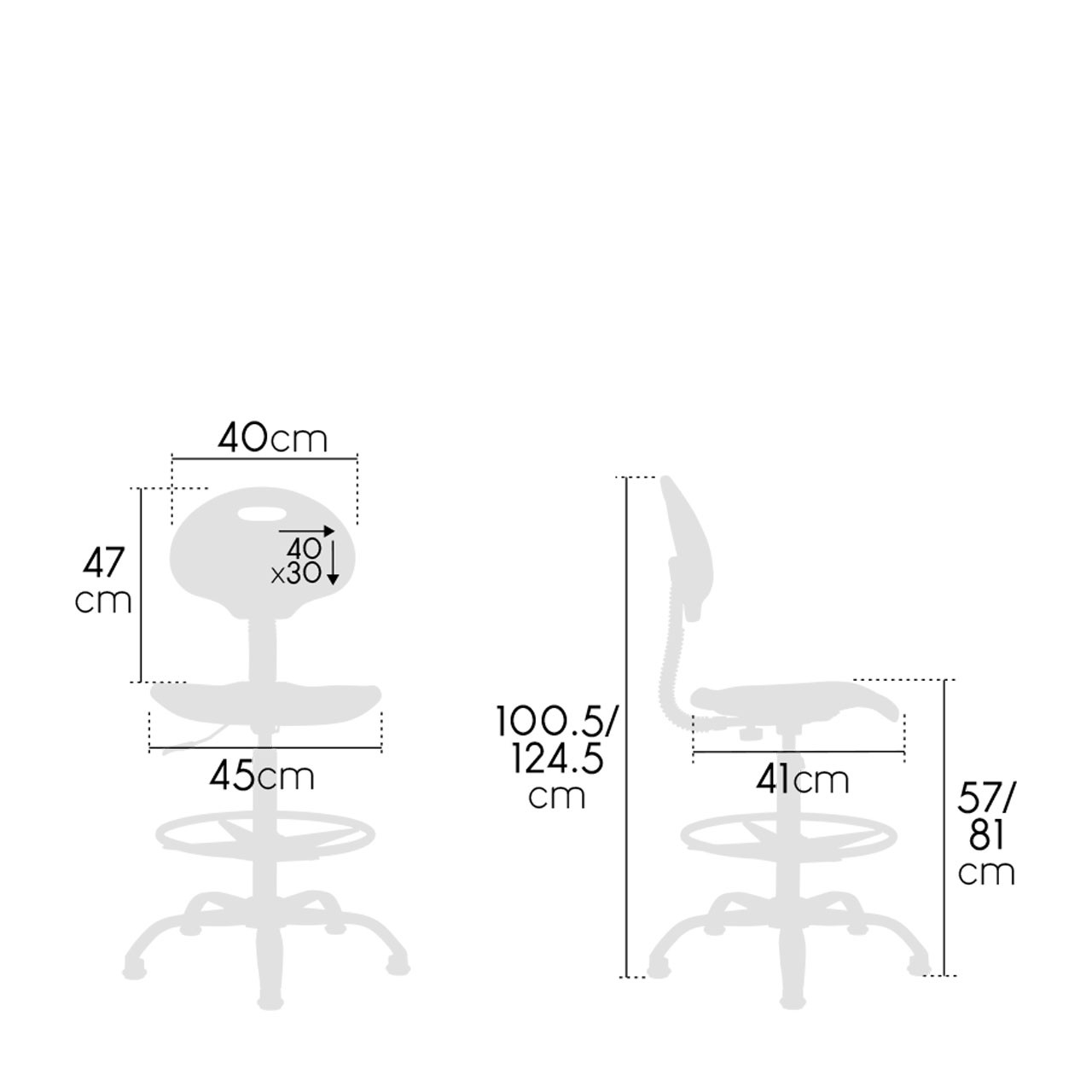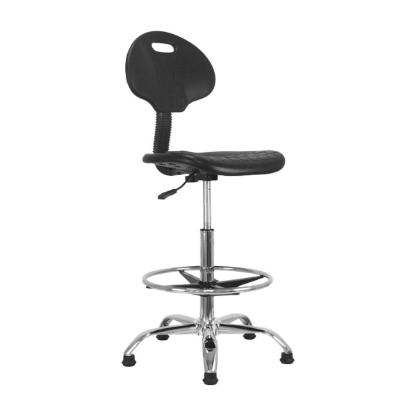 Le siège de bureau Rouen permet de passer de la position debout à assis très rapidement. L'assise ainsi que le dossier ont un revêtement antidérapant. Le siège Rouen se règle en hauteur de 57 à 81 cm, ce qui permet une position assise sur tous types de bureaux. Le pied est en métal chromé avec patins et est équipé d'un repose pied réglable pour une meilleure position assise.