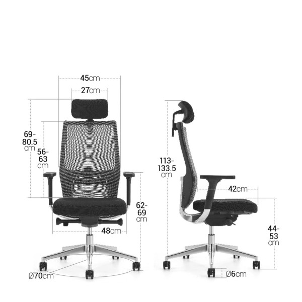 Siège ou fauteuil de bureau de gamme professionnelle. Le siège Fréjus de chez AZUR bénéficie d'une assise à haute densité avec un tissu élastique très résistant. Le fauteuil dispose d'un appui-tête réglable en hauteur et en inclinaison est en tissu rembourré ce qui permet une tenue parfaite lors des longue journée de travail. Le dossier du fauteuil Fréjus est équipé d'un soutien lombaire réglable ainsi que d'accoudoirs réglables en 3D. Le fauteuil Fréjus a une structure en aluminium.