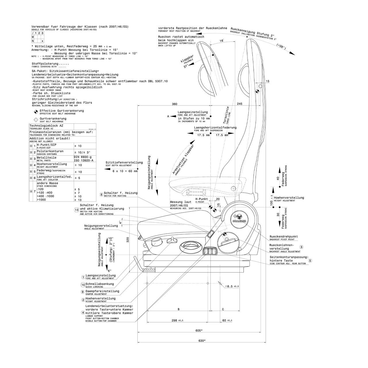 Le Siège camion et autocar GRAMMER KINGMAN STD à suspension pneumatique est ergonomique et innovant, il offre une position assise confortable. Il est doté de multiples réglages comme la hauteur et l'inclinaison du dossier ainsi que de l'assise. Le siège GRAMMER KINGMAN STD bénéficie d'un support pour lombaire et latéral réglables ainsi que d'un abaissement rapide. De plus, le siège GRAMMER KINGMAN STD est doté d'un mécanisme de basculement pour un meilleur soutien et une nette amélioration de la posture. Son dossier haut vous assure un confort de conduite. Enfin, le siège bénéficie d'une ceinture de sécurité 3 points. Ce modèle est proposé avec un branchement EPS2, pour les modèles fabriqués après Mars 2003.
