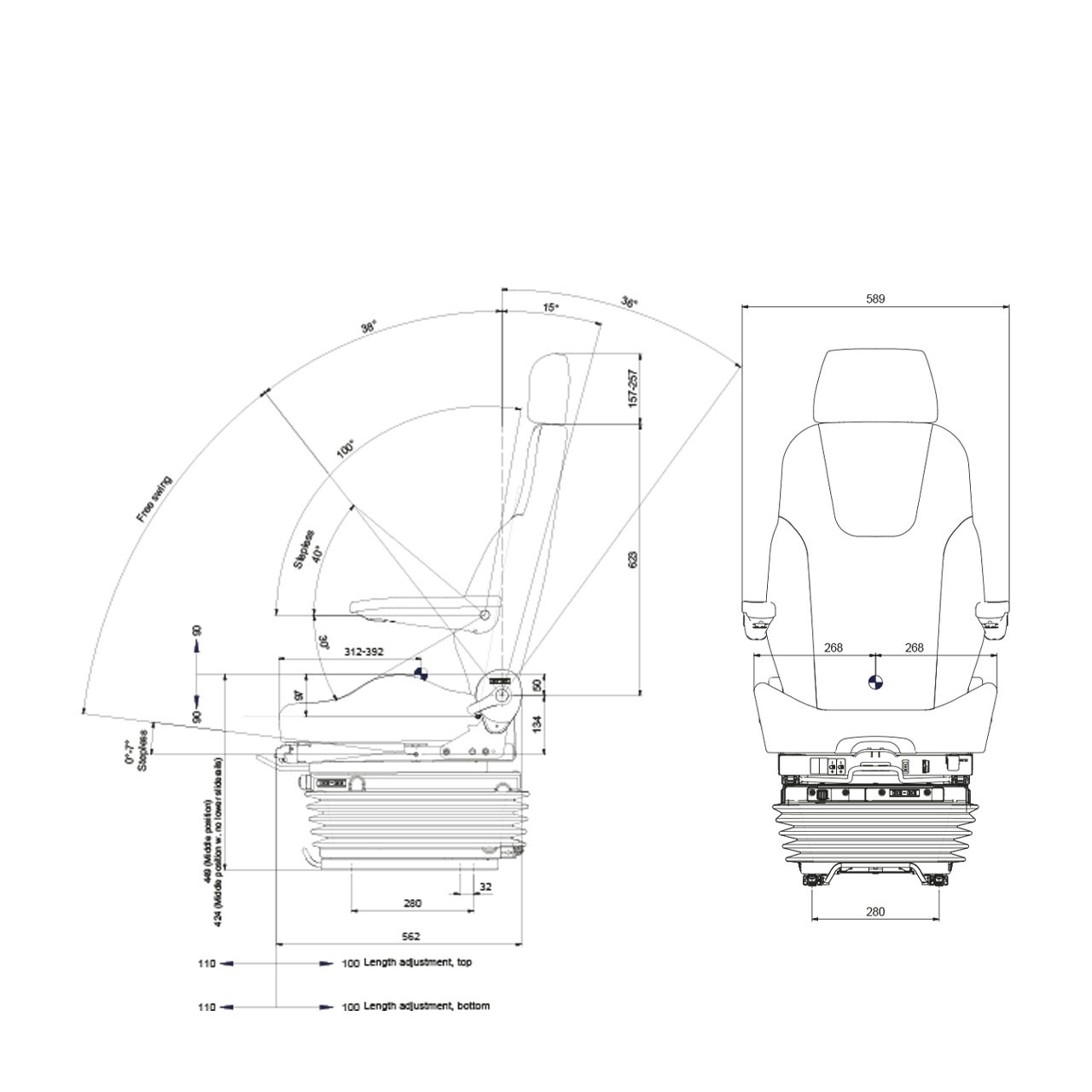 Le siège BE-GE 3700.19 à suspension 24 volts est un siège conducteur ultra-robuste, conçu pour résister aux environnements les plus exigeants. La suspension BE-GE 19 peut être surbaissé, ce qui en fait un choix idéal pour les machines forestières, minières ou de TP. Les accoudoirs et commandes peuvent être intégrés entre les unités du siège, et le BE-GE 3700.19 garantit un confort supérieur même lors de longues heures de travail, compte tenu de son support lombaire. Grâce à de nombreuses options disponibles, le siège BE-GE 3700.19 peut être entièrement personnalisé selon les besoins de chaque machine et de chaque conducteur grâce à son réglage de poids pouvant aller à 210 Kg. Le siège BE-GE 3700.19 est équipé d'un harnais 4 points, d'un appui-tête réglable ainsi que du chauffage et de la ventilation.